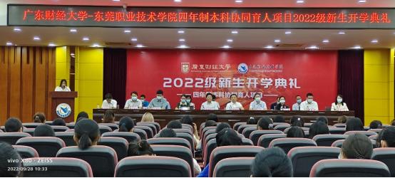 2022年9月28日,我校2022级广财四年制本科协同培养班新生开学典礼在行政楼1B201举行。广东财经大学校党委常委、副书记刘祖华,我校党委委员、副校长杨云奇以及两校相关职能部门负责人出席典礼,2022级协同育人项目新生和教师代表参加典礼,典礼由广东财经大学校党委办公室、校长办公室副主任宋信强主持。