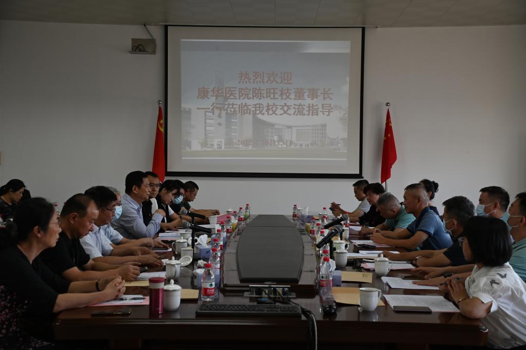 东莞康华医院董事长陈旺枝表示我校卫生健康学院办学成绩优异,希望能借助我校良好平台,加强沟通,推动合作,共同促进东莞医疗事业发展更上一层楼。