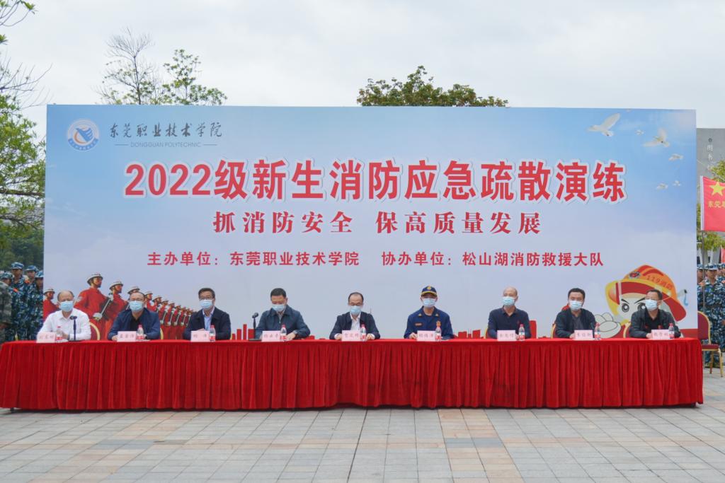 为强化我校师生消防意识,锤炼安保队伍应急处突能力,11月2日下午,我校与松山湖消防救援大队在学校教学楼前开展2022级新生消防应急疏散演练活动。学校党委副书记、校长贺定修,党委委员、副校长杨云奇、松山湖消防救援大队大队长杨维泽等领导出席演练,我校相关部门负责人、各二级学院专职副书记、辅导员以及2022级军训团全体人员共4500多人参加活动。