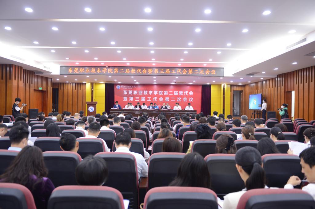 完成会议的各项议程后,蔡东宝副书记宣布东莞职业技术学院第二届教职工代表大会暨第三届工会会员代表大会第二次会议闭幕,大会在庄严的国际歌中落下帷幕。