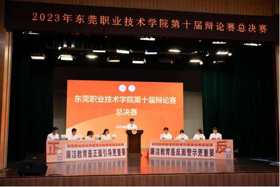 6月14日下午,由学校法治办、审计监察处、马克思主义学院、校团委、学生会联合主办的东莞职业技术学院第十届辩论赛决赛顺利举行。校党委副书记、纪委书记蔡东宝出席活动,学前教育与人文学院党总支书记刘忠洋、国际交流学院党总支书记李玮炜、纪检室副主任陈雪茹担任决赛评委。