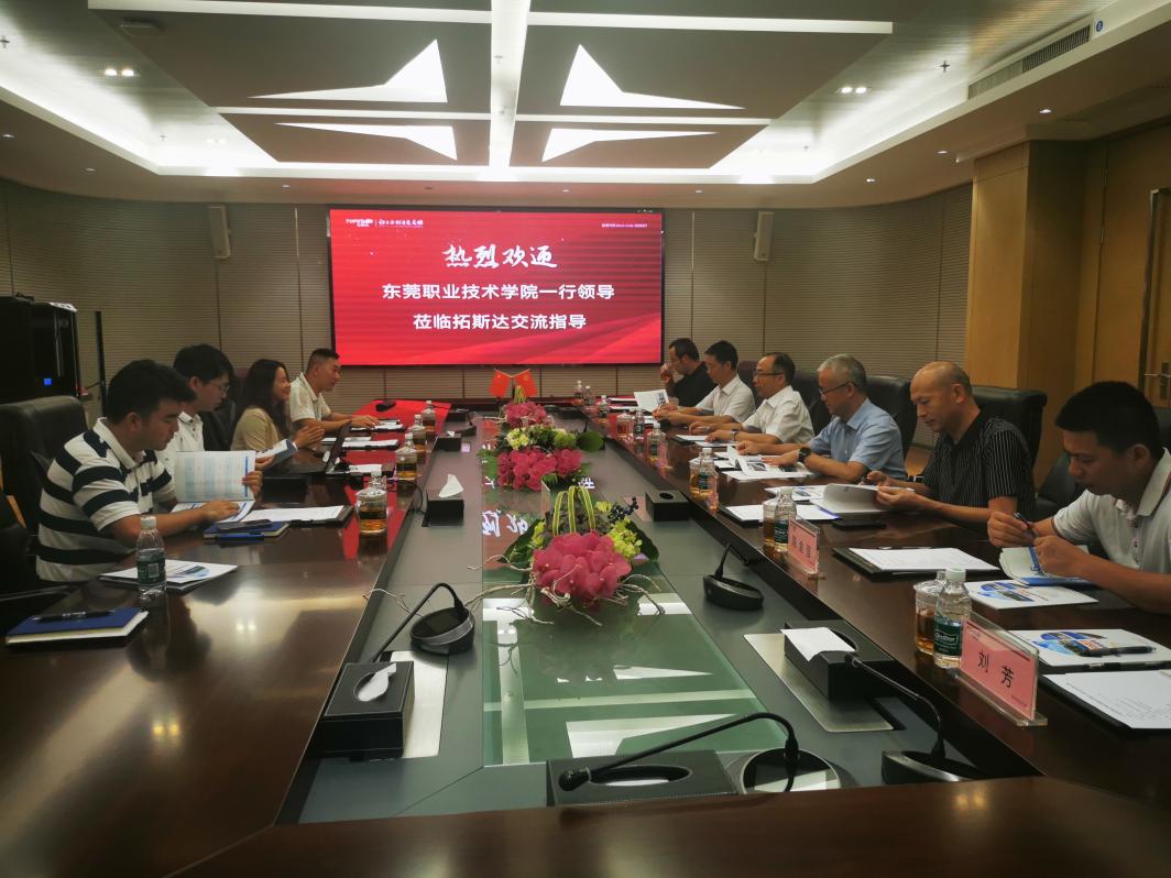 贺定修校长一行参观了拓斯达总部展厅,深入了解了集团的发展历程、经营业务、专家团队以及相关核心技术。座谈会期间,谢仕梅副总裁对东职院的到来表示热烈欢迎,她指出拓斯达作为上市公司,一直坚持“让工业制造更美好”的企业使命,目前也正在开发机器人实训平台,希望以此交流为契机,加强校企深度融合。贺定修校长介绍了学校办学实力、专业设置,提出拓斯达的用人需求和学校目前开设专业高度契合,希望进一步拓展订单班、现代学徒制等合作形式。双方还就机器人实训平台、人工智能设计、工业机器人维修等领域进行了深入交流。