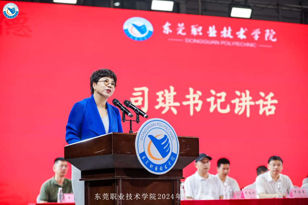 在同学们即将踏上新征程之际,校党委书记司琪以“技以载道 匠心筑梦”为题,为毕业生讲授进入人生新阶段前的“最后一课”,代表学校送上期望与祝福。她对2024届毕业生的成绩表示肯定。在本届毕业生中,有21名同学获得过国家奖学金、70名同学应征入伍、1399名同学通过专升本考试,还有27名同学进入华为、106名同学进入比亚迪就业。