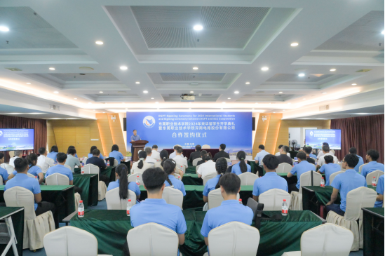 8月28日上午,我校2024年来华留学生开学典礼暨“随企出海”校企合作签约仪式在图书馆举行。校党委副书记、校长贺定修,校党委委员、副校长杨云奇出席典礼,学生处、产教融合办、图书馆、国际交流学院、电子信息学院等部门相关领导、辅导员和老师,全体来华留学生参加典礼。
