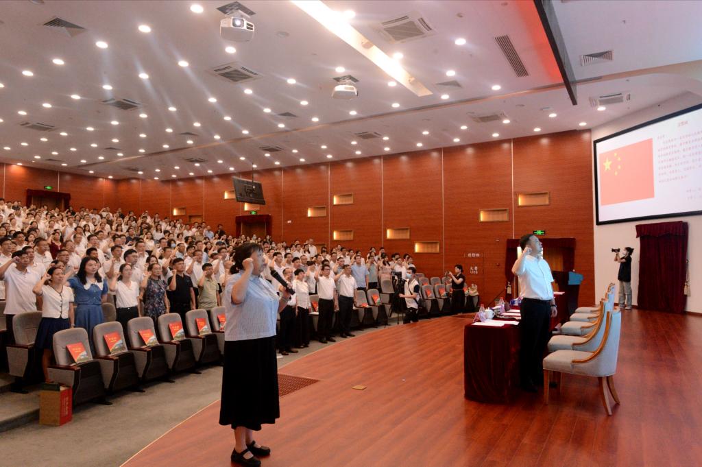 启动仪式上,全体教师开展新学年集体宣誓活动,学前教育与人文学院教师路小燕上台领誓。杨云奇副校长表示,希望全体教师将宣誓词转化为实际行动,秉持从事高职教育的初心,传承和弘扬教育家精神,用心关爱每一位学生,为我校高质量发展贡献自身力量。