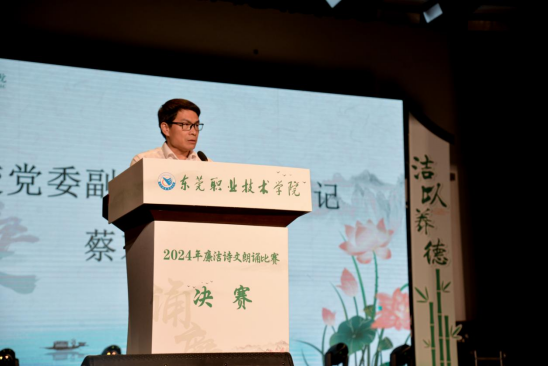 学校党委副书记、纪委书记蔡东宝在致辞中指出,本次比赛的目的,既是赛出水平、锻炼队伍,更是通过比赛传播清正廉洁、服务师生理念,提振学校党员干部和师生的凝聚力,营造“颂廉、知廉、从廉”的东职新风尚,以建设“清廉东职”的实际行动,回应学校高质量发展、立德树人的新要求、新使命。他要求,全校师生要深入学习习近平总书记关于党的纪律建设的重要论述,努力做到政治可靠、身正学高、严于律己,努力做到以德养廉、崇廉尚俭、清廉守正,努力成长为德才兼备的新时代建设者。