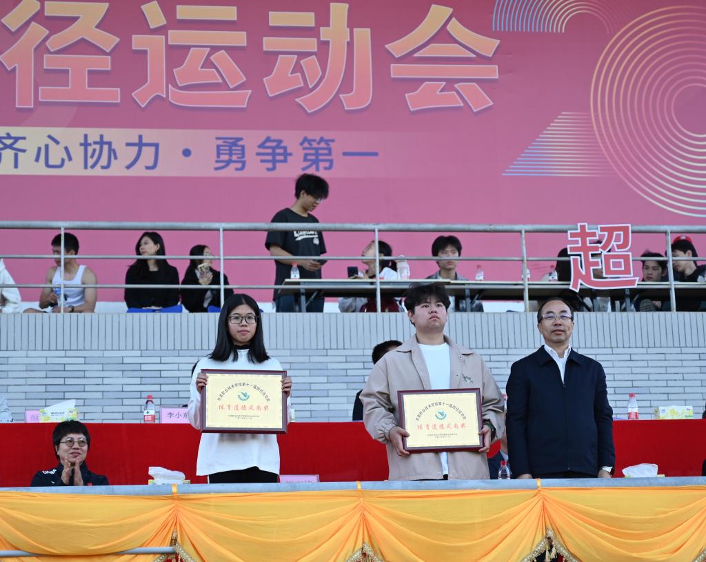 随后,校领导,各部门、学院相关负责人依次为获奖个人和集体颁奖。校党委书记司琪宣布东莞职业技术学院第十一届田径运动会闭幕。