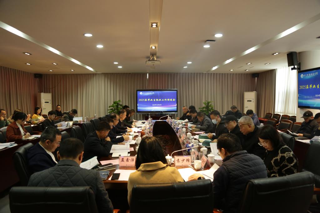 贺定修校长对2024年就业工作给予了充分肯定,并就下一阶段工作提出了要求。他指出,要把就业工作贯穿人才培养全过程,切实增强学生“想就业”的意愿,着力培养学生“能就业”的本领,全面夯实学生“有业就”的保障,以更优服务持续提升学生就业质量。对于如何高效开展2025年就业工作,他明确提出了以下几点要求:一是统一思想认识,提高政治站位,切实认识做好就业工作的紧迫感和使命感;二是加强组织领导,压实工作责任,加强部门间协同配合,形成工作合力;三是深化就业市场研判,建全反馈机制,强化就业与招生培养联动,提高供需匹配度;四是深挖就业岗位,推动精准帮扶,持续深化访企拓岗行动;五是加强就业建设,严格工作考核,认真落实毕业生去向登记制度,准确把握就业政策指标,确保数据真实准确,全力以赴实现毕业生更高质量充分就业。
