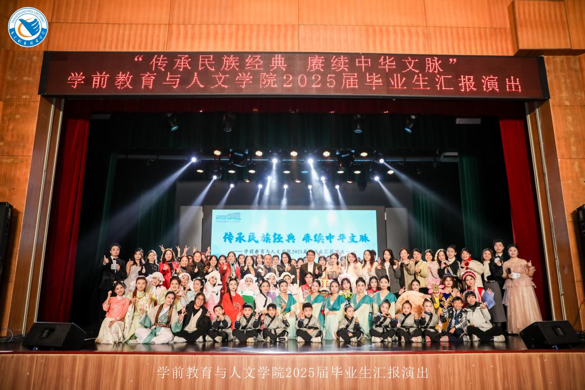 12月26日上午,我校学前教育与人文学院2025届毕业汇演在学校梦想剧场精彩上演。本次汇演以“传承民族经典,赓续中华文脉”为主题。学校党委副书记、纪委书记蔡东宝,东莞市教育局学前教育科科长陶俭钦,各二级学院主要领导,全市各幼儿园代表以及家长代表出席活动。