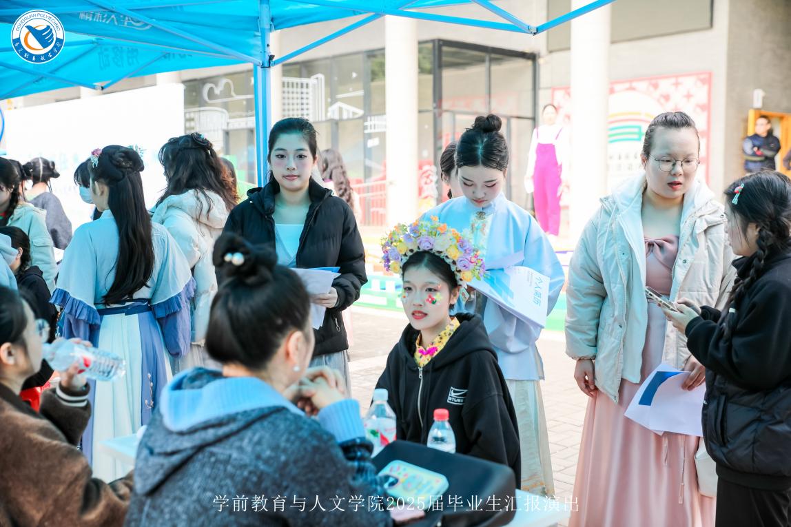 演出期间,学前教育与人文学院还在学生活动中心布置了与毕业汇演同主题的书画作品展,向嘉宾与全校师生展示毕业生们的优秀美术作品,画展内容丰富多样,为传承中华优秀传统文化积极作为,也为学校美育工作添砖加瓦。同时,学前教育与人文学院在学生活动中心广场设置了专场招聘会,现场汇聚多家单位,为毕业生提供对口的就业岗位。活动为毕业生搭建了与企业面对面沟通的平台,招聘单位通过现场观看毕业生汇演和画展,加深对毕业生能力素养的了解认识,有助于促进毕业生与招聘单位之间的双向选择。