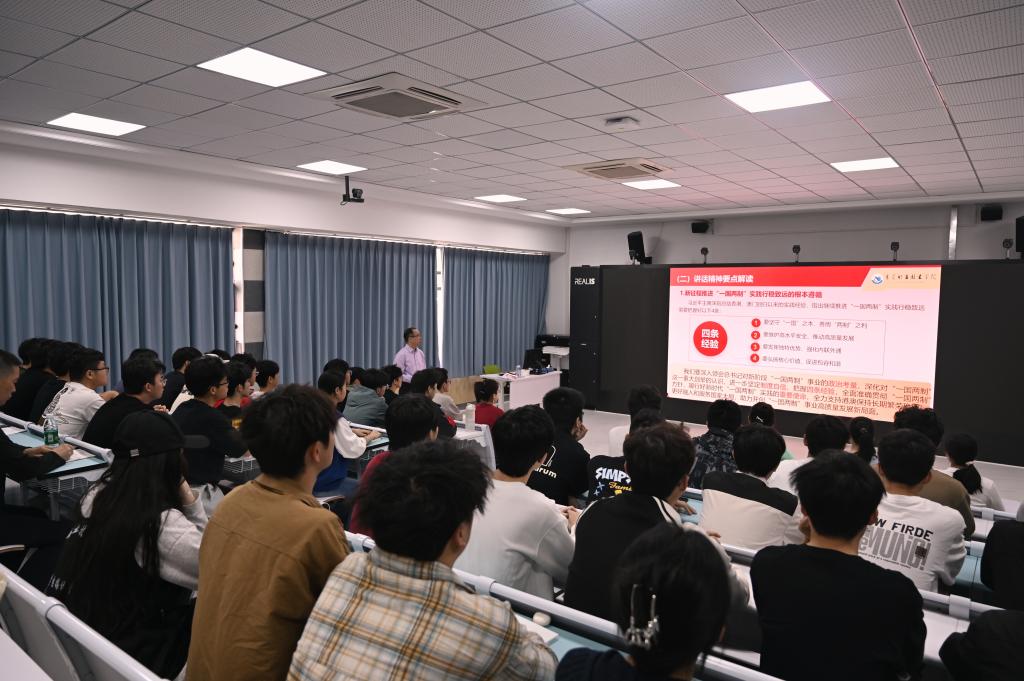 党委副书记、校长贺定修为24级机器人1、2班同学带来以《牢记嘱托 勇担使命——在推进中国式现代化广东实践中贡献青春力量》为主题的思政课。