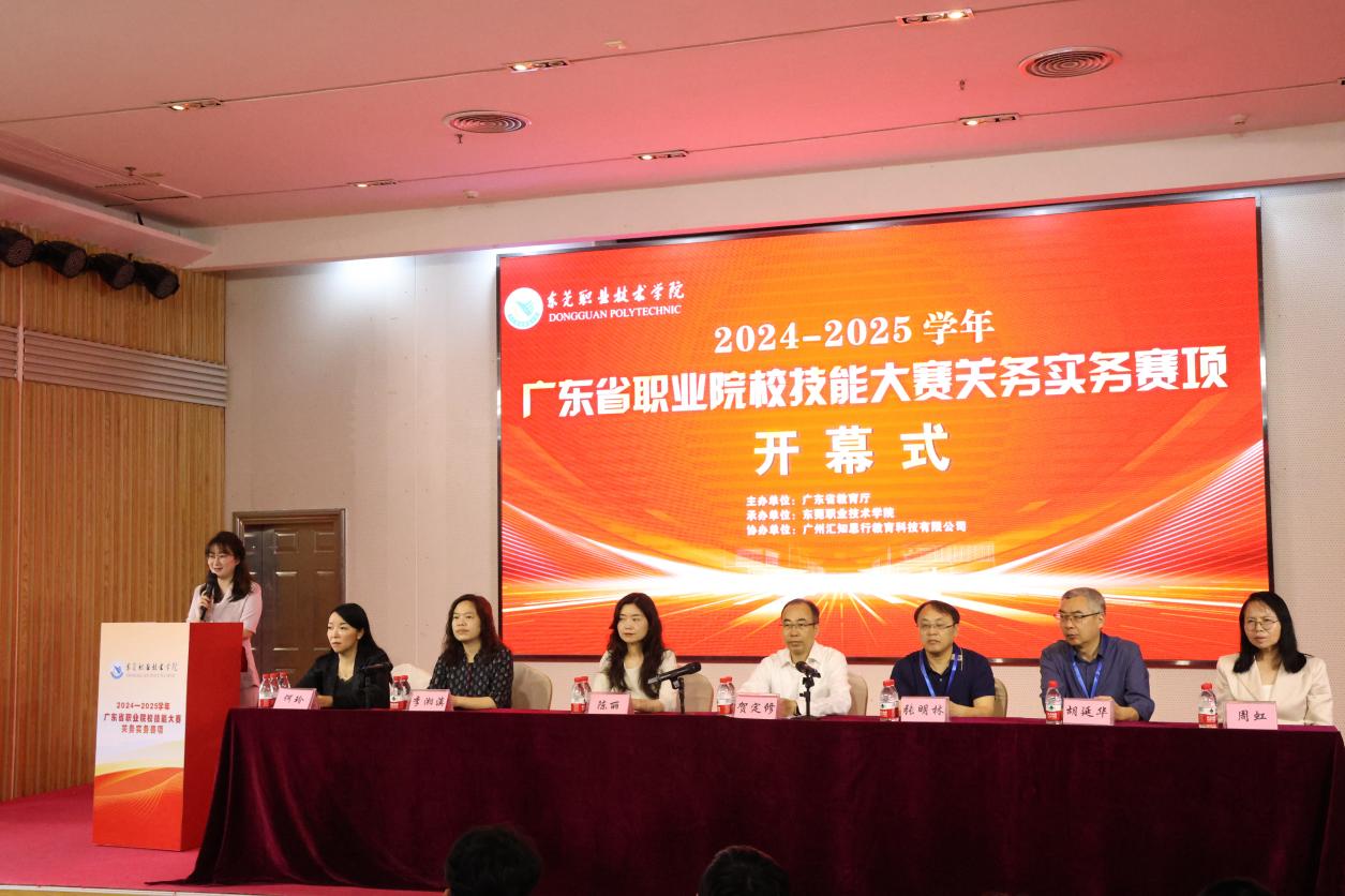 3月14日上午,大赛开幕式在我校图书馆学术报告厅举行。校党委副书记、校长贺定修,广东省教育厅省赛督察员陈丽,赛项专家组组长张明林,裁判长胡延华,仲裁长李湘滇,东莞市采购与供应链联合会会长何玲,商贸学院院长周虹等领导和嘉宾出席开幕式。贺定修校长在致辞中表示,大赛是深化职业教育改革、推动关务人才培养的重要平台,希望通过赛事进一步加强与各兄弟院校的交流与合作,共同推动关务人才培养模式的创新与发展。他勉励参赛选手发扬顽强拼搏、勇于创新的精神,赛出风格、赛出水平,充分展现新时代职业院校学生的风采。